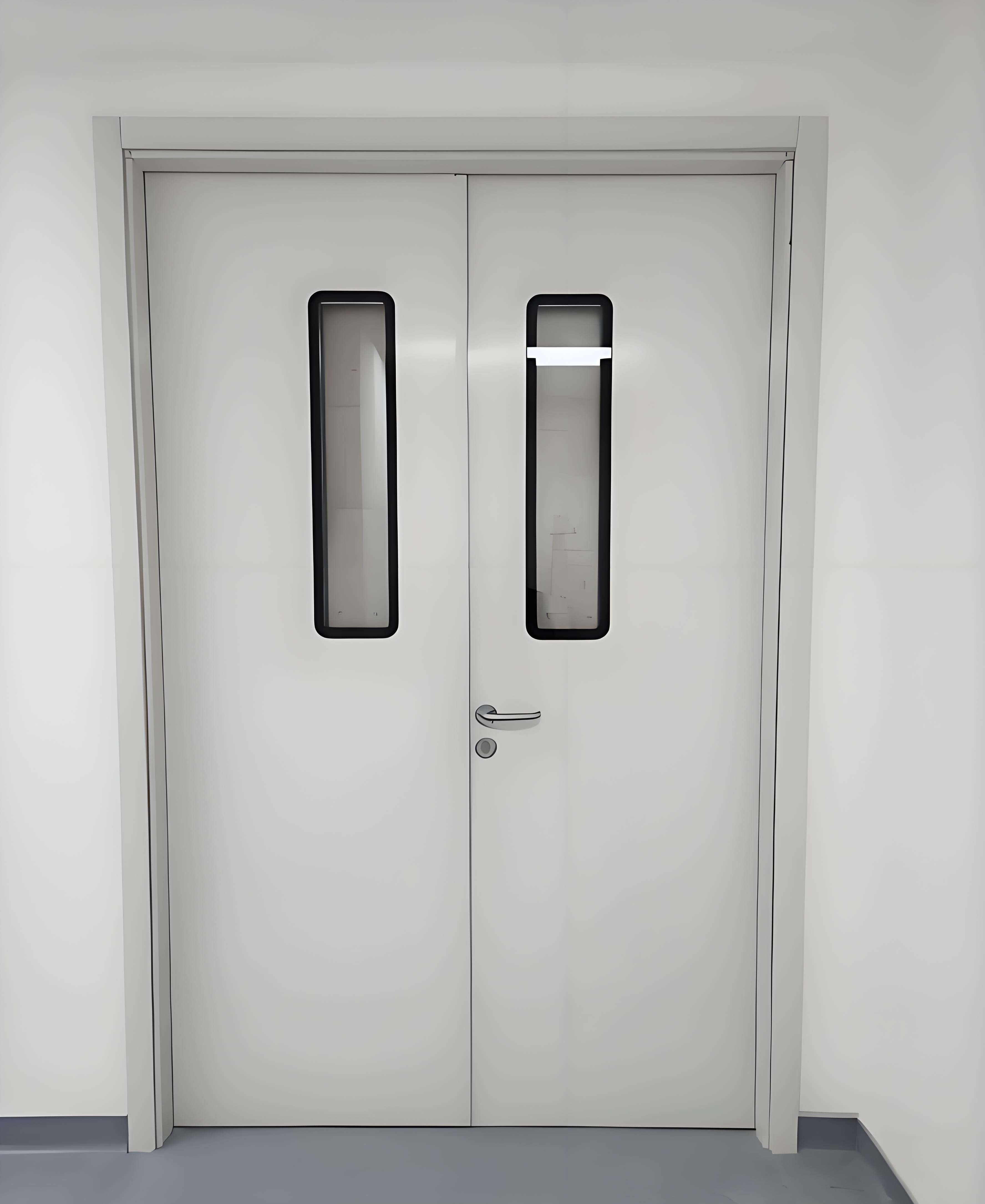 3、门扇:厚度50mm,表面无焊点,门扇采用专用设备折弯成型,整体表面无缝无接头现象;并且结构为扣合结构,扣合边完全吻合、防止门扇面材松脱,门扇整体平整美观,利于保持清洁;边角无气泡、无污点 门体内部采用弓形加强筋,再填充纸蜂窝;